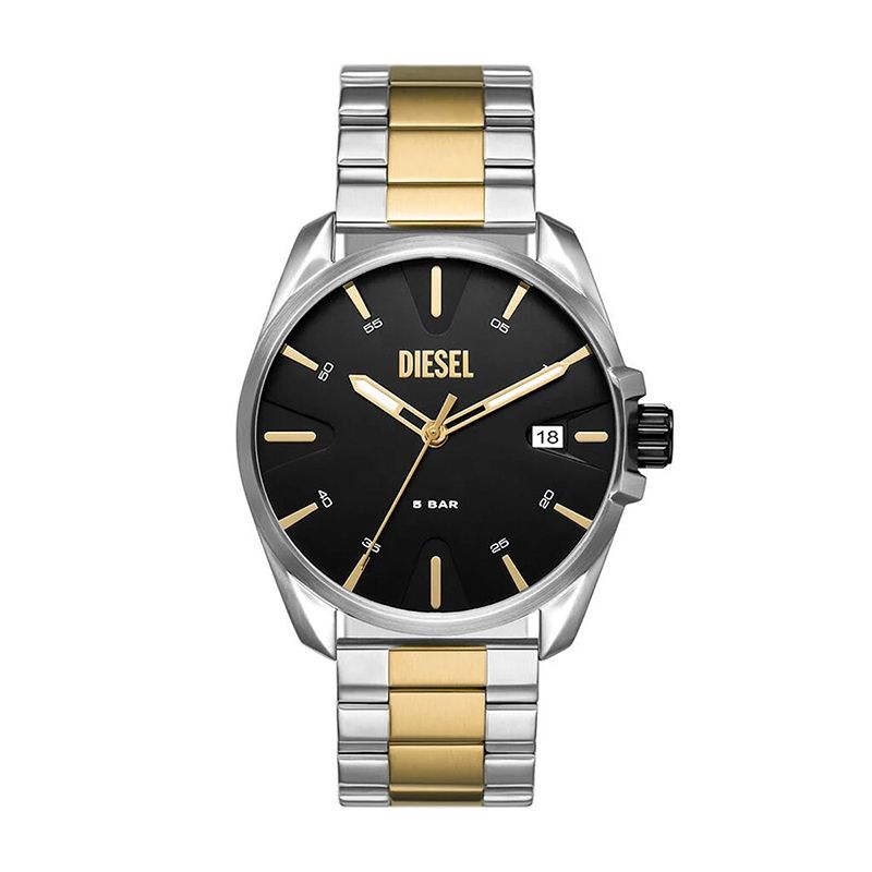 Révélez un style audacieux avec la Montre Homme DIESEL MS9 NOIR Acier Bicolore. Cette montre élégante présente un boîtier rond de 44 mm en acier inoxydable couleur or et argent, offrant une allure riche et sophistiquée qui attire le regard.