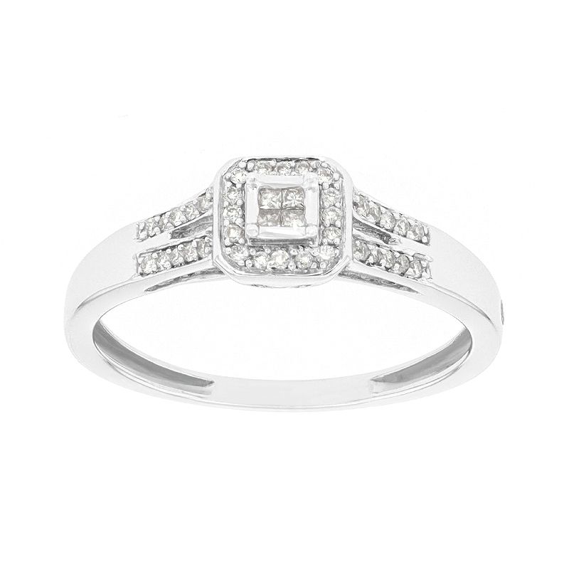 Captivante et raffinée, cette bague femme EDORA en Or 750/1000 blanc se distingue par son poids de 2.40g et par l'élégance de ses diamants de qualité GH-SI, totalisant 0.10 carats. Le design présente un diamant central en carré sublimé par un halo de diamants étincelants, offrant une luminosité et une brillance exceptionnelles.