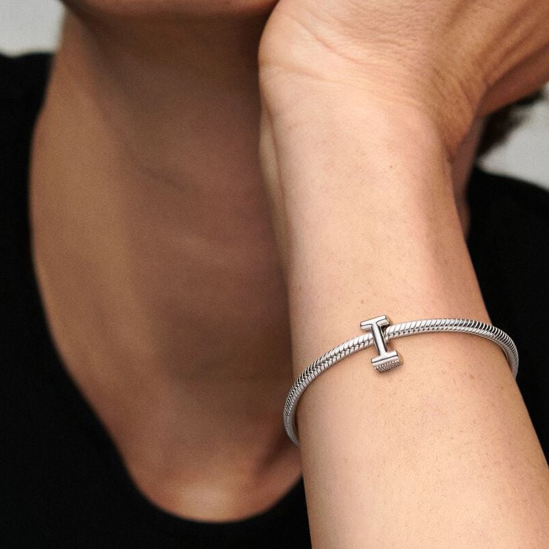 Charm Femme Pandora Moments Alphabet Lettre I 797463. Minimaliste, symbolique et élégante, la lettre I s’affirme avec poésie dans ce charm en argent 925/1000e, conçu pour capturer une émotion ou un prénom en un seul caractère. Présentée dans un cube ajouré à la finition lisse et brillante, la majuscule “I” apparaît avec pureté sur la face avant du bijou, tandis que l’arrière dévoile un subtil décor de petits cœurs en relief, signature sentimentale de la collection Pandora Moments.