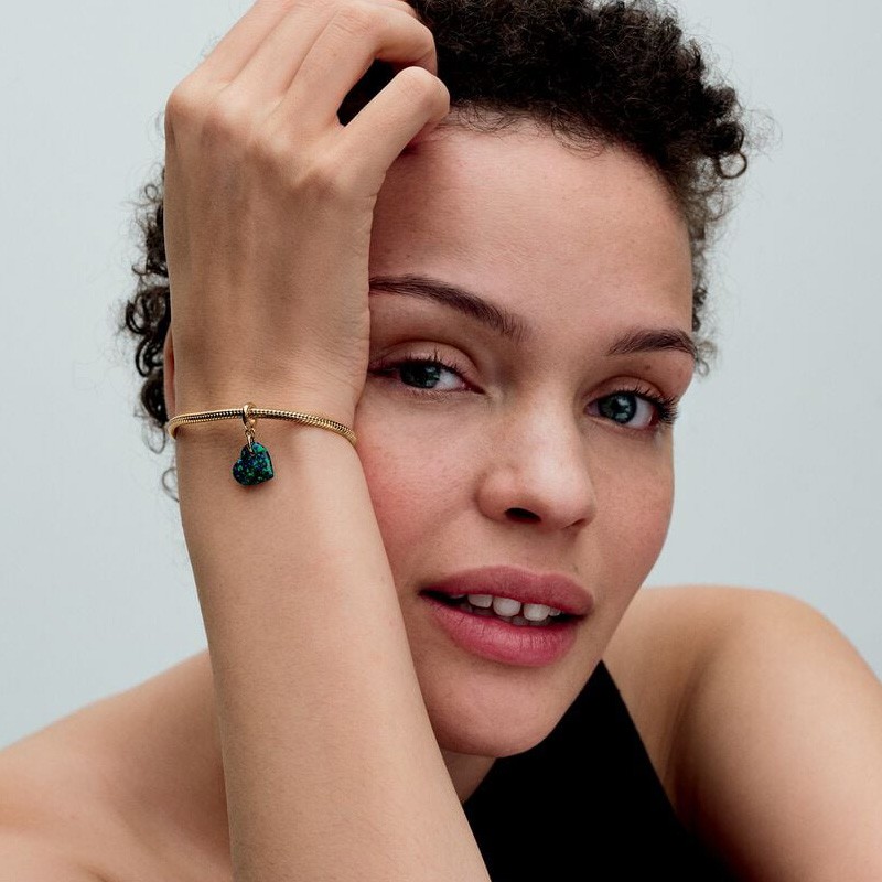 Laissez vibrer votre instinct sauvage avec ce charm Pandora Moments en forme de cœur, orné d’une opale de synthèse aux reflets irisés. Ses nuances vertes chatoyantes évoquent la richesse de la jungle tropicale et l’énergie libre de la nature.