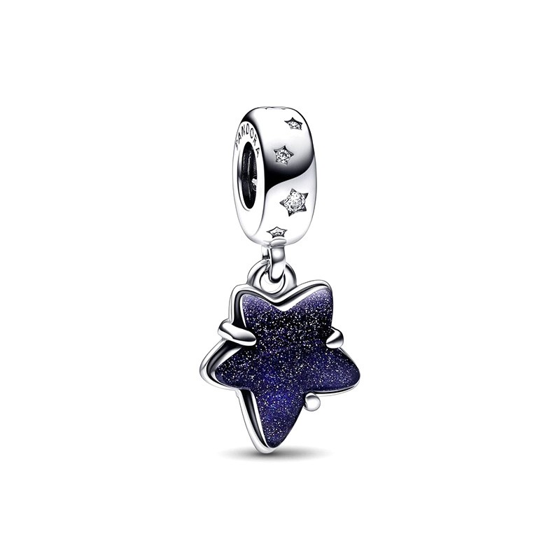Laissez-vous emporter par la magie d’une nuit étoilée avec ce charm Pandora Moments en forme d’étoile. Confectionné en Argent 925/1000e, il se distingue par son verre de Murano bleu profond, formé en étoile asymétrique et parsemé de reflets scintillants.