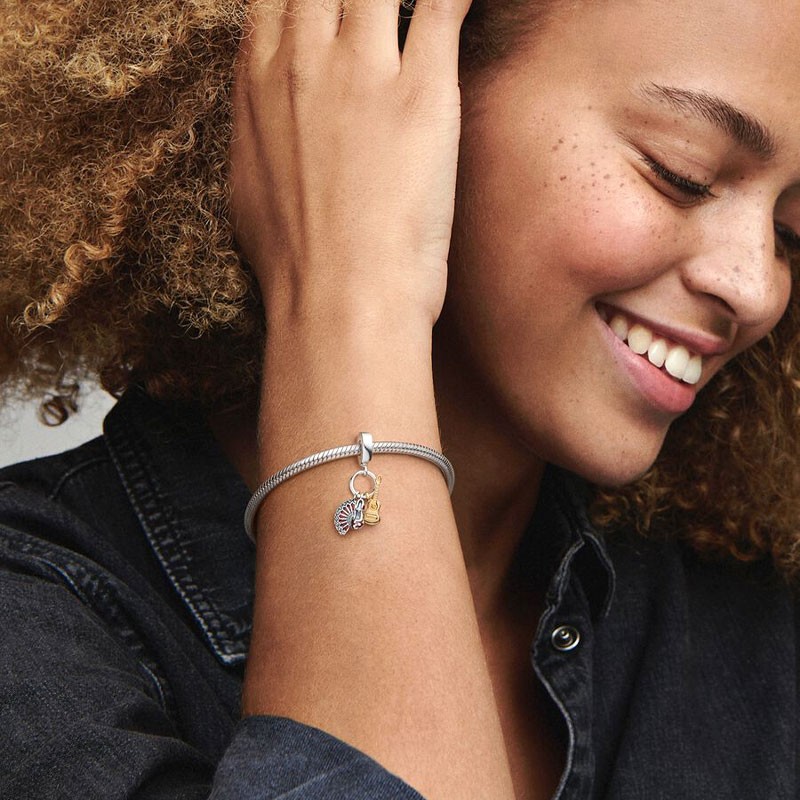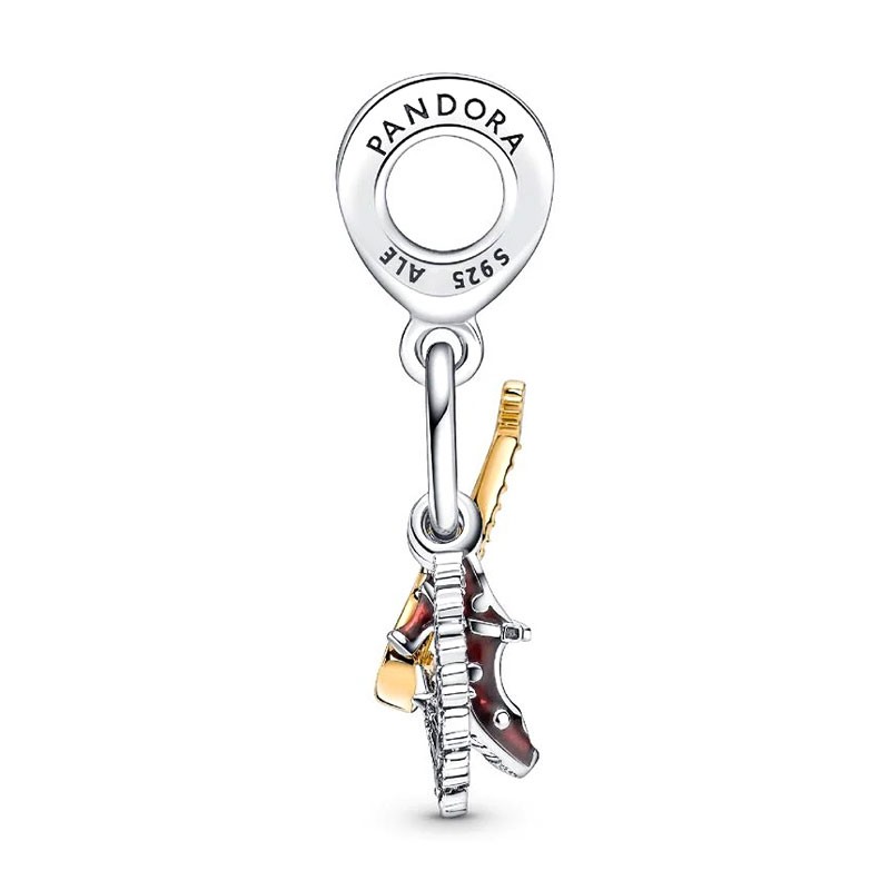 Ce charm est finement fini à la main en Argent Massif (925/1000e), le métal signature de Pandora, et le pendentif guitare est doré à l'Or 14 carats (585/1000e), créant un élégant contraste bicolore. L'éventail est orné de détails gravés évoquant la dentelle et d'une finition en résine façon émail plique-à-jour, tandis que la chaussure de flamenco présente une résine façon émail rouge transparente. Le charm est également gravé du message « ❤ SPAIN » (J'aime l'Espagne).