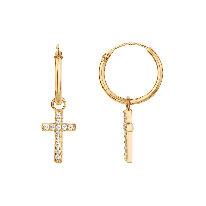 Boucles d'oreilles femme créoles croix plaque or jaune et oxydes - accueil - edora
