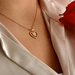 ✨ D’un collier femme au motif cœur torsadé, disponible en plaqué or ou en argent 925/1000, selon votre préférence.