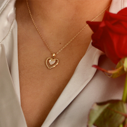 Ce bijou raffiné est orné de deux cœurs entrelacés, dont l’un est sublimé par des oxydes de zirconium scintillants, pour une brillance incomparable. Sa chaîne ajustable de 40 + 3 cm garantit un confort optimal et s’adapte harmonieusement à toutes les morphologies et styles.