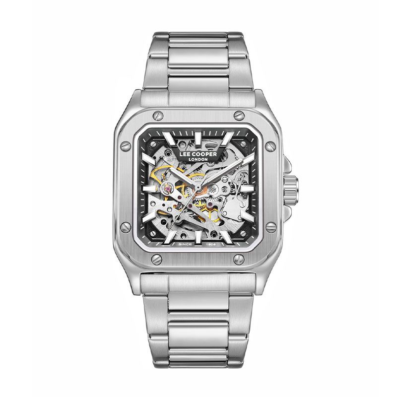 La Montre Homme LEE COOPER Edward Acier LC08198.350 incarne une sophistication mécanique rare grâce à son mouvement automatique apparent, visible à travers un cadran transparent qui révèle l’ingéniosité horlogère au cœur de cette pièce d’exception. Son boîtier carré de 39 mm en acier brossé souligne un design audacieux et contemporain, sublimé par des vis décoratives qui accentuent son caractère industriel chic. Le bracelet en acier massif, fermé par une boucle déployante, apporte à la fois robustesse et confort pour un port au quotidien.