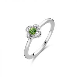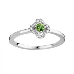 La bague pour femme Salina en or blanc 750/1000 est ornée d'un saphir vert central entouré de 16 diamants scintillants pour un total de 0,08 ct et un poids total de 2 g.