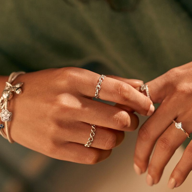 Symbole universel d’amour éternel, de connexion et de continuité, cette bague évoque avec délicatesse les promesses qui ne s’effacent jamais. Son design ajouré offre une silhouette légère, fluide et contemporaine, parfaite pour celles qui aiment porter un message fort à travers une pièce tout en subtilité. Portée seule, elle habille la main avec discrétion ; associée à d’autres bagues Pandora, elle permet des jeux de superpositions modernes et personnalisés.