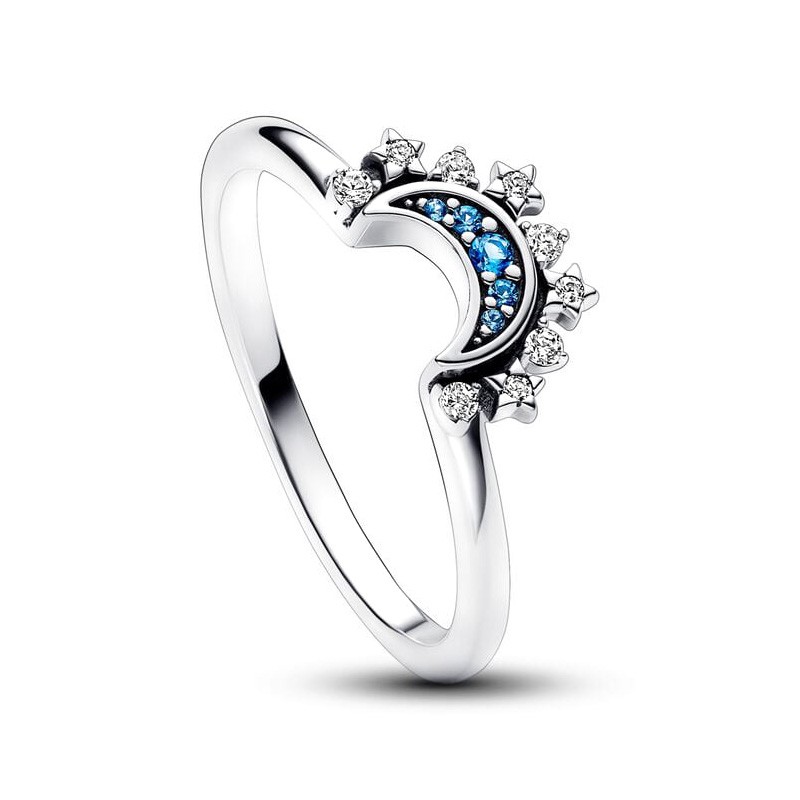 Bague Femme Pandora Moments Céleste Lune Scintillante Bleue Argent 192675C01
