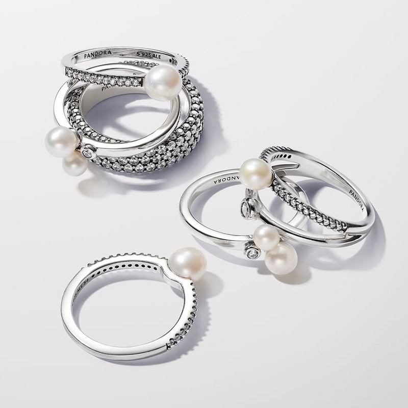 Bague Femme Pandora Timeless Double Perle de Culture d'Eau Douce Traitée & Pavé 193147C01