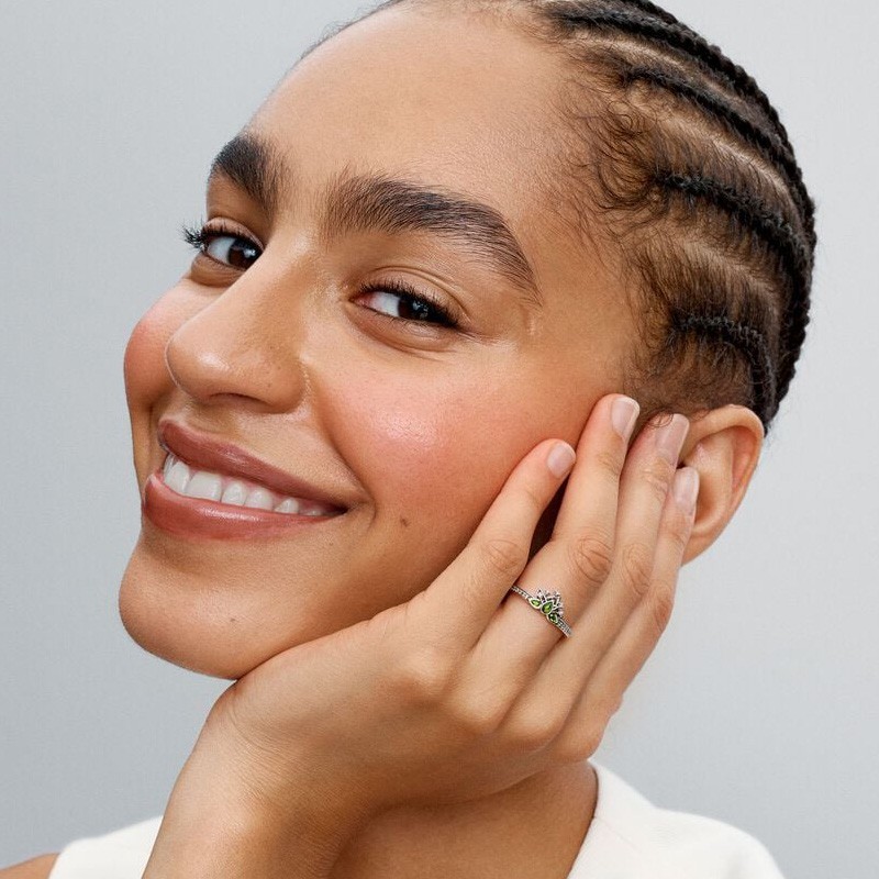Faites briller votre quotidien d’une touche royale avec la Bague Femme Pandora Diadème Princesse Disney Tiana. En Argent 925/1000e, ce bijou enchanteur est orné de trois cristaux verts scintillants en forme de poire, dessinant un délicat nénuphar inspiré du diadème de Tiana, l’héroïne courageuse de Disney.