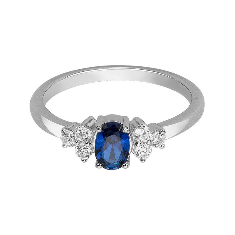 Fascinante et élégante, cette bague en argent 925/1000 magnifie l’éclat d’une pierre de synthèse bleue taillée en ovale, rehaussée de six oxydes de zirconium lumineux qui l’encadrent avec finesse. Une véritable invitation à la rêverie, entre ciel étoilé et profondeur marine.