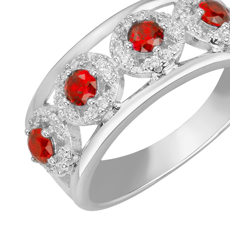 À la croisée de l’élégance et de l’audace, cette bague en argent pour femme signée EDORA incarne la passion avec éclat. Son design ajouré sublime une série de quatre pierres rouges de synthèse, intensément lumineuses, chacune encerclée d’un halo d’oxydes de zirconium blancs étincelants.