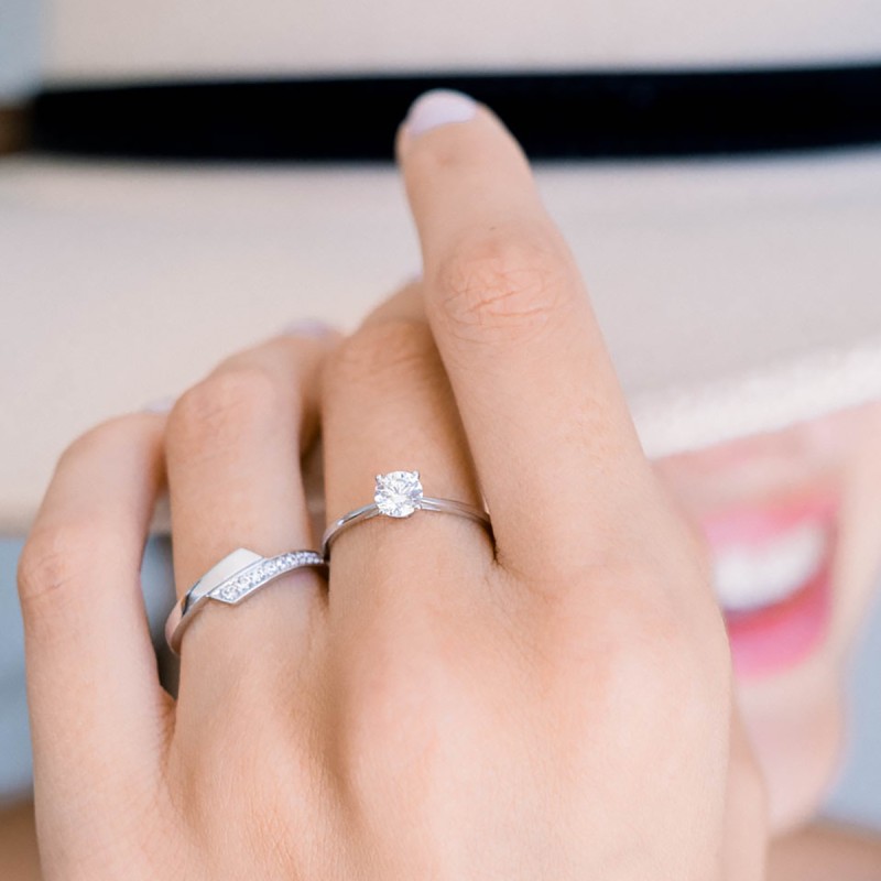 Le serti quatre griffes, sobre et sécurisé, met en valeur la pierre en laissant pénétrer la lumière sous tous les angles, révélant toute sa brillance. L’or blanc, aux reflets glacés et raffinés, s’harmonise parfaitement avec la transparence de l’oxyde pour un rendu à la fois moderne et classique, idéal pour souligner un engagement, un coup de cœur ou simplement le plaisir d’un bijou essentiel.