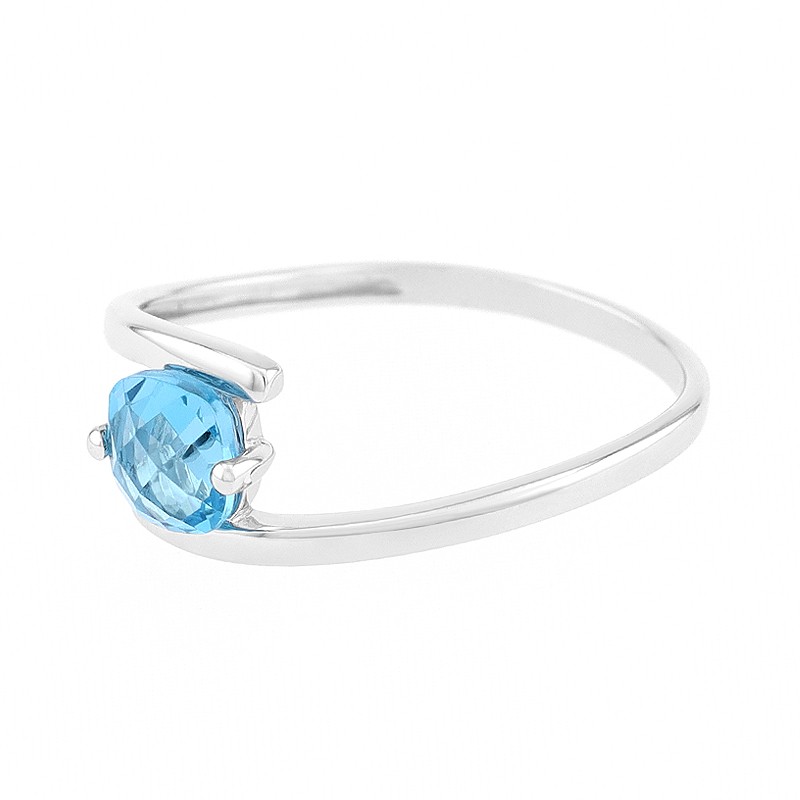 Bague Femme Solitaire OR 375/1000 Blanc et Topaze
