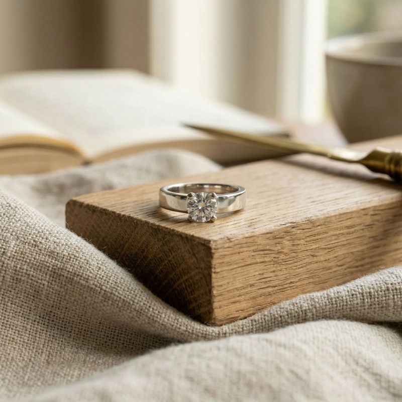 Le design de cette bague repose sur un solitaire d'une grande distinction : un superbe oxyde de zirconium de taille ronde est maintenu avec force par quatre griffes, trônant au centre de la composition. L'anneau se distingue par son profil large et plat, apportant une dimension contemporaine et une allure structurée qui capte la lumière avec éclat. Cette esthétique robuste et raffinée en fait un accessoire de caractère, capable de sublimer chaque geste avec une assurance constante.