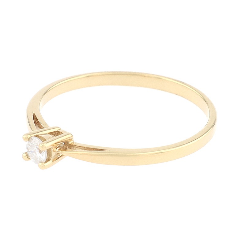 Fabriquée en Or 375/1000 jaune, cette bague solitaire se distingue par sa chaleur et sa luminosité, offrant un cadre somptueux au joyau qu'elle porte. Au cœur de cette création, un diamant de 0.04 ct brille de mille feux, mis en valeur par un serti à 4 griffes qui non seulement sécurise la pierre précieuse mais maximise également son éclat en permettant à la lumière de la pénétrer sous tous les angles.