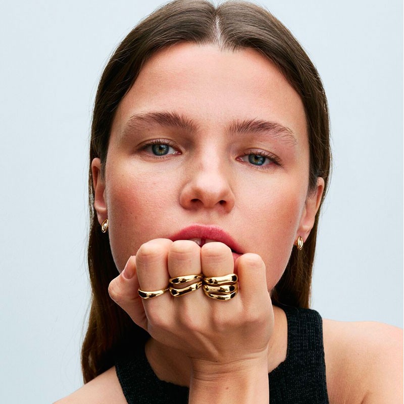Parfaites pour celles qui aiment jouer avec les accumulations ou recherchent des pièces polyvalentes dorées, ces bagues organiques deviennent la base créative de multiples combinaisons. Un duo qui célèbre la fluidité naturelle dans un design doré contemporain, disponible sur votre bijouterie en ligne EDORA.