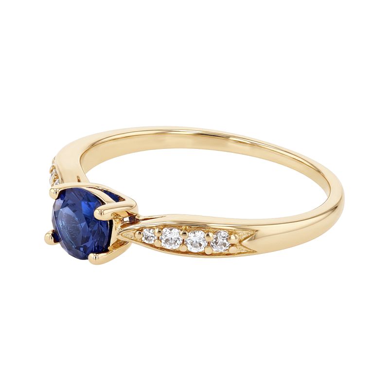 La pièce maîtresse de cette bague est un oxyde de zirconium bleu saphir, taillé en facettes pour capturer la lumière avec une profondeur remarquable. Maintenue par un serti à quatre griffes robustes, la pierre dévoile une couleur intense qui évoque la noblesse des gemmes précieuses. Ce point focal est magnifié par un travail délicat sur les épaules de la monture.