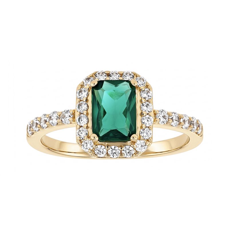 Bague Femme Entourage Rectangulaire EDORA Plaqué Or et Oxyde Vert EDO76100317