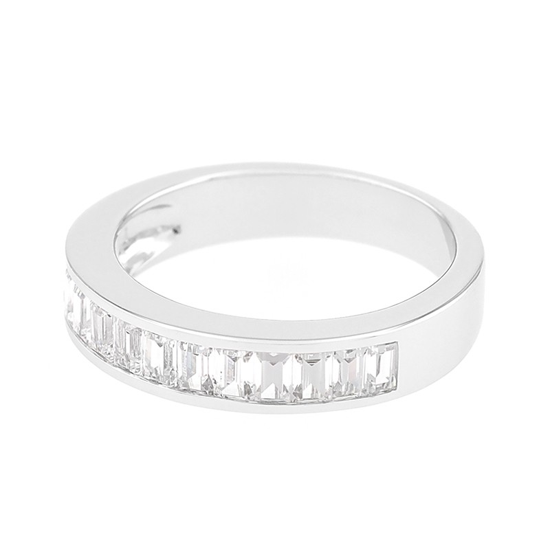 Brillante et audacieuse, cette alliance femme en Or 750/1000 blanc séduit par son demi-tour serti de 13 diamants baguette d’une pureté GH-SI, totalisant 0,90 ct. Chaque pierre, soigneusement enchâssée, reflète la lumière avec intensité pour une allure éclatante.