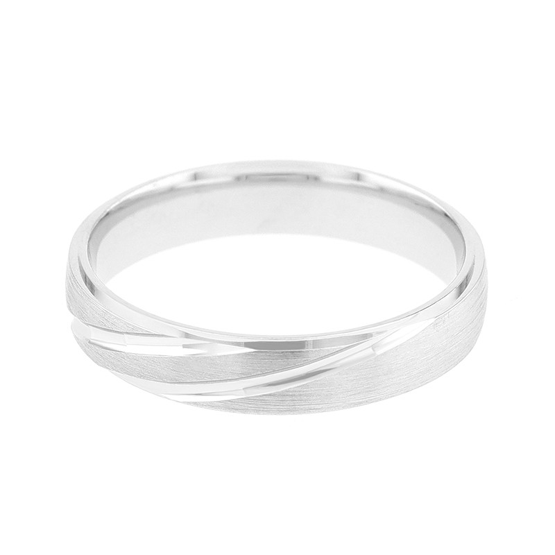 Cette alliance en Or 750/1000 blanc séduit par son élégante composition de lignes brossées et polies, qui s’entrelacent avec subtilité sur toute la surface de l’anneau. Son style contemporain lui confère une allure graphique et moderne, tout en restant fidèle aux codes classiques.