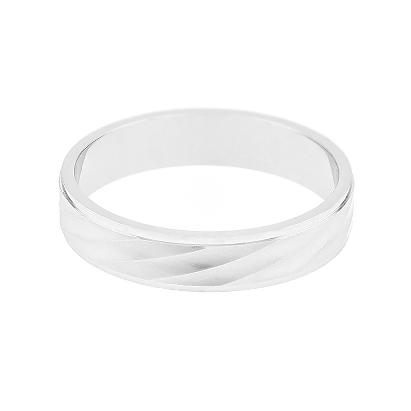 Élégante et subtilement texturée, cette alliance en Or 750/1000 blanc séduit par ses stries en diagonale finement ciselées, offrant un jeu de lumière tout en nuances. L’effet satiné donne à cette création une allure contemporaine et épurée.