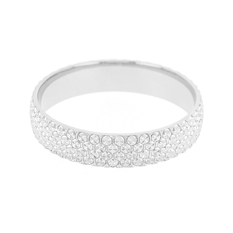 Entièrement travaillée en Or 375/1000, cette alliance se pare d’un délicat pavage effet diamanté, capturant la lumière à chaque mouvement. Un scintillement subtil et raffiné, qui célèbre la brillance d’un lien sincère, éternel et plein de promesses.