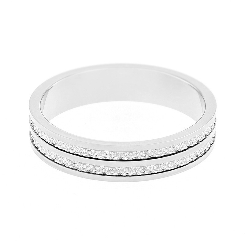 Cette alliance mixte en Or 375/1000 séduit par ses deux lignes finement ciselées, révélant une double rangée d’effets diamantés qui captent la lumière sous tous les angles. Élégante sans ostentation, elle offre une silhouette structurée et brillante, parfaite pour une déclaration moderne.