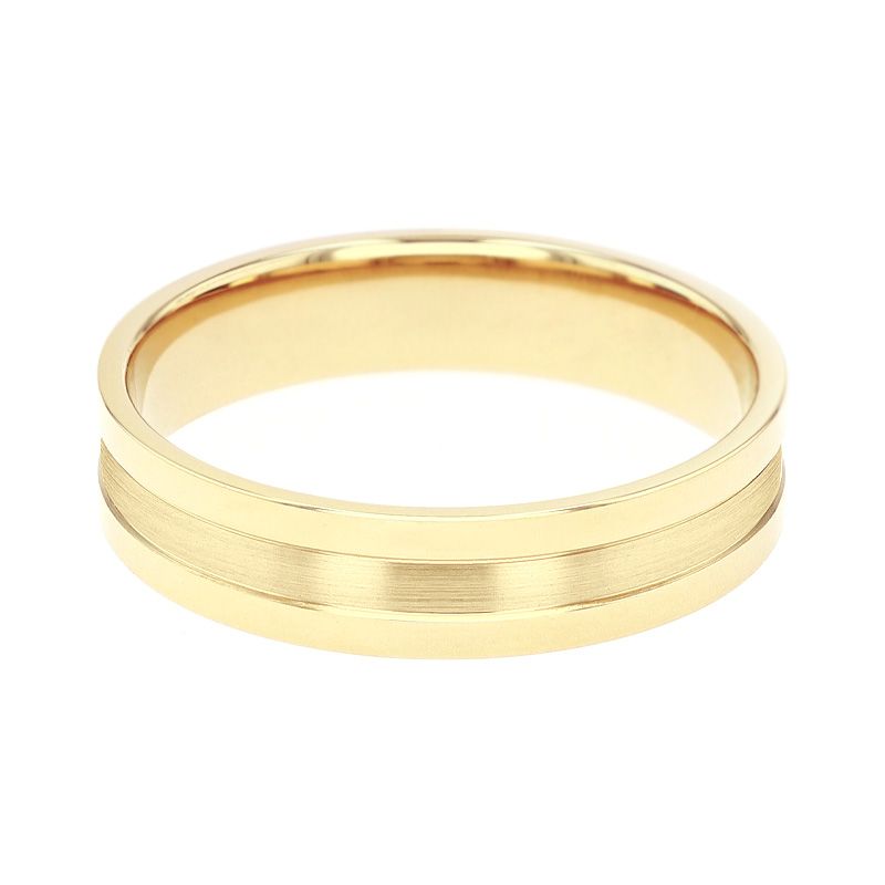 Le design de cette bague repose sur l'attrait d'une composition texturée et raffinée : l'anneau présente un contraste de finitions sophistiqué, alliant des bordures à la finition polie miroir à un ruban central à la finition brossée. Ce jeu de lumière et de matières est accentué par deux fines rainures ciselées qui structurent l'anneau avec modernité. Avec une largeur de 5 mm et une épaisseur de 1,3 mm, ce bijou offre une présence visuelle affirmée tout en assurant un confort idéal au quotidien.