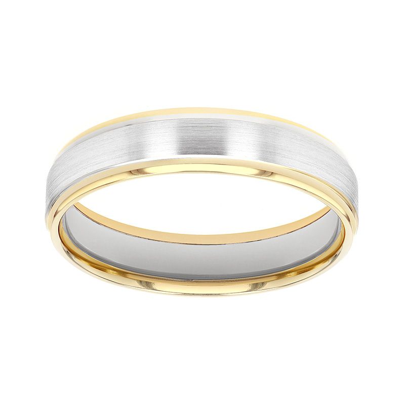 Le design de cette bague repose sur l'attrait d'une composition texturée et raffinée : l'anneau présente un ruban central en or gris palladié à la finition brossée mate, encadré par deux bordures biseautées en or jaune à la finition polie miroir. Ce jeu de finitions et de couleurs crée un relief captivant qui souligne la modernité de votre engagement. Avec une largeur de 5 mm et une épaisseur de 1,4 mm, ce modèle "Confort" assure un bien-être idéal pour un porté quotidien.