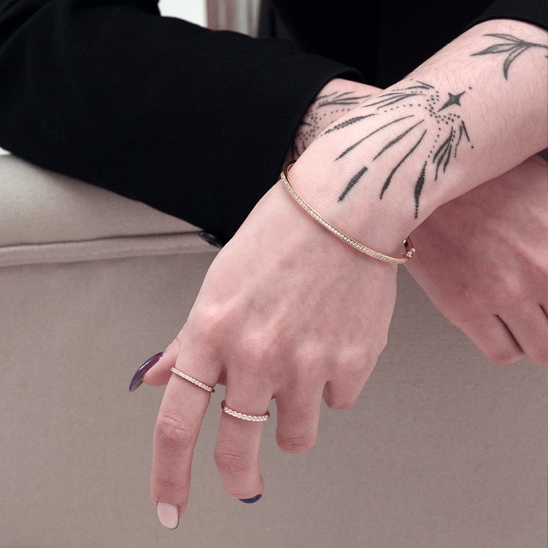 Ce bijou est façonné en plaqué or jaune de haute qualité, assurant un éclat durable et une couleur riche et chaleureuse. L'anneau est finement serti d'une rangée d'oxydes de zirconium scintillants sur son demi-tour, créant un chemin de lumière subtil. Le choix du plaqué or permet d'allier l'aspect précieux à une grande résistance pour un usage fréquent.