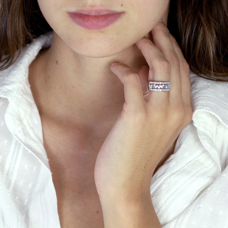 Son design sophistiqué alterne diamants ronds et baguettes dans une composition éclatante, jouant sur la lumière pour offrir un éclat incomparable. Son poids généreux de 8,60 g témoigne d’un savoir-faire artisanal d’exception, rendant cette alliance femme aussi luxueuse que symbolique. Un choix parfait pour une cérémonie de mariage inoubliable ou pour marquer un engagement précieux.
