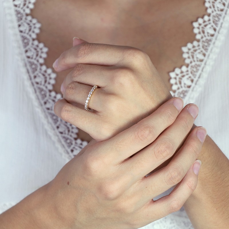 Symbole d’un amour éternel, cette alliance femme en or 750/1000 jaune célèbre l’union et l’engagement avec éclat. Sertie de 11 diamants naturels, d’une qualité HSI et totalisant 0,40 ct, elle illumine chaque instant d’une brillance inoubliable.
