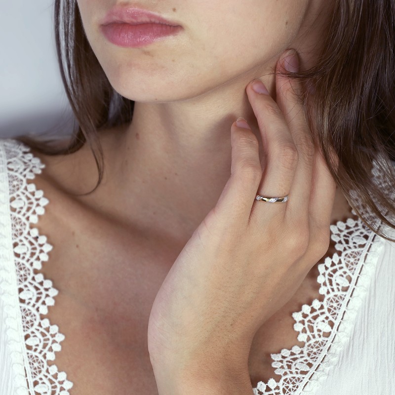 Retrouvez la Bague Femme Alliance OR 750/1000 Bicolore et Diamants EDO3N041BB2.750MIL sur votre bijouterie en ligne EDORA.