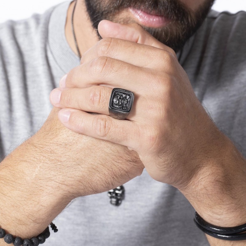 Bague Homme Chevalière Tête de Mort PHEBUS LEGEND Acier Noir