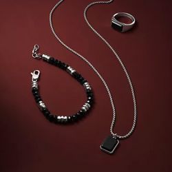 Sublimez votre style avec le Bracelet Perles Homme 19CM FOSSIL ALL STACKED UP Acier Argenté Agates Noires. Ce bracelet sophistiqué allie l'éclat discret de l'acier inoxydable couleur argent à la profondeur des agates noires, créant un accessoire riche en contraste et en élégance.