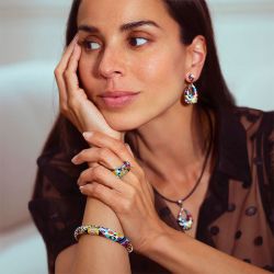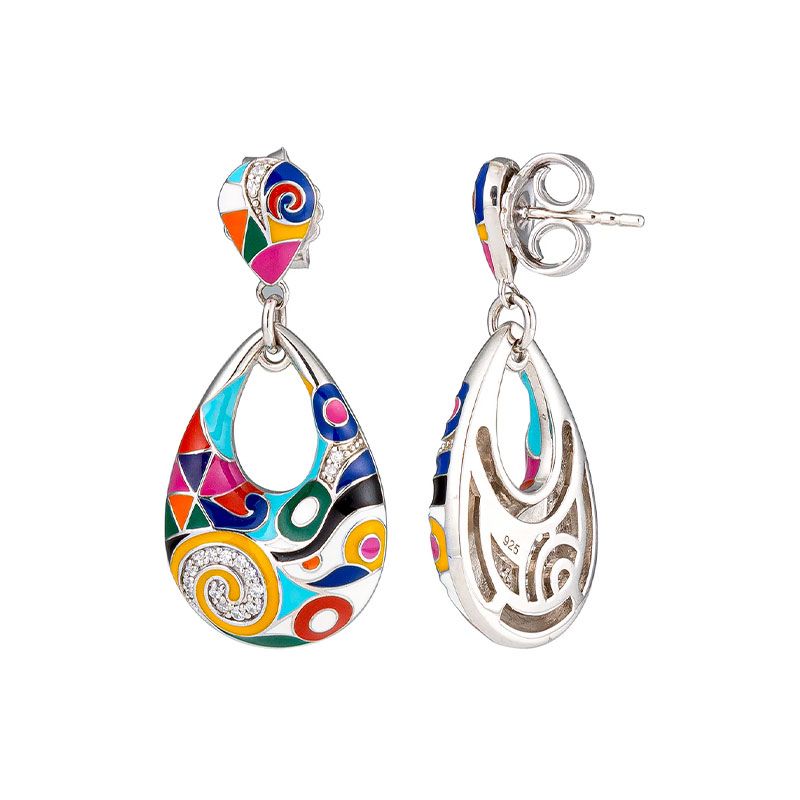 Porter les boucles d’oreilles pendantes Marina UNA STORIA, c’est embarquer pour un voyage sensoriel au cœur de la Polynésie. Ces boucles en argent 925/1000 s’inspirent de l’harmonie poétique des fonds marins tropicaux, où chaque créature et chaque corail dansent au rythme des vagues. L’argent rhodié, ponctué de laques multicolores appliquées à la main et d’oxydes de zirconium, reflète les teintes vibrantes de l’océan : bleu lagon, rouge corail, vert émeraude. Leurs lignes douces et organiques capturent le mouvement fluide de la mer et la grâce des créatures qui l’habitent.