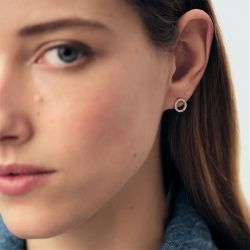 Leur design épuré met en avant un motif rond délicatement pavé d’oxydes de zirconium, des pierres qui se distinguent par leur éclat cristallin et leur capacité à capter la lumière sous tous les angles. Ce sertissage précis et minutieux révèle un travail d’artisanat soigné, valorisant chaque détail pour un rendu sophistiqué et lumineux.