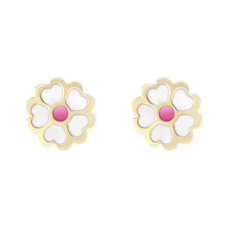 Fabriquées en or 375/1000, ces fleurs délicates rehaussées de laque colorée, ajoutent une note de fantaisie et leur fermoir à vis assurent un maintien sécurisé. Offrez à votre enfant un bijou qui fera fleurir son sourire avec ces boucles d'oreilles fleurs.