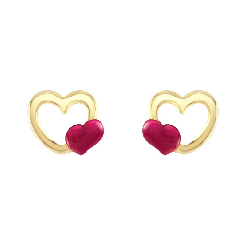 Ajoutez une touche de tendresse au style de votre enfant avec ces jolies boucles d'oreilles enfant puces cœurs en OR 375/1000 jaune EDORA. Fabriquées en or 375/1000 et accompagnées de petits coeurs laqués rose profond, elles feront craquer les petites filles !