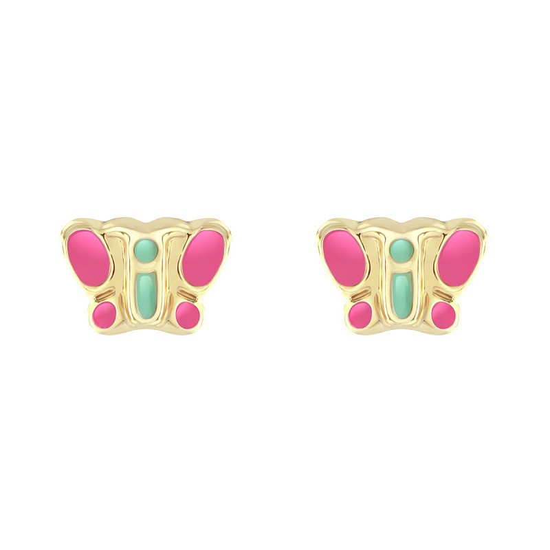 Les boucles d'oreilles puces Papillons en Or 375/1000 jaune pour enfant par EDORA , sont finement réalisées avec des détails en laque colorée. Pesant 0.50 g, ces boucles d'oreilles sont parfaites pour les oreilles délicates des plus jeunes grâce à leurs poussettes à vis sûrs et confortables.