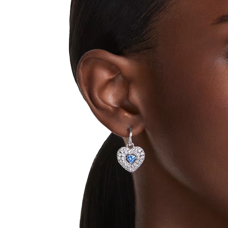 Les Boucles d'Oreilles Femme Pendantes Coeur Swarovski Idyllia Métal Argenté et Zircones 5680392 captivent par leur élégance romantique. En forme de cœur, ces pendants en métal rhodié sont ornés de zircones étincelantes, mettant en valeur un cœur central bleu d'une rare intensité. Avec une taille délicate de 1,8 x 1,7 cm, elles sublimeront vos tenues avec éclat. Ces boucles d'oreilles, légères et sophistiquées, sont parfaites pour un cadeau empreint d'émotion. Retrouvez ces boucles d'oreilles Swarovski Idyllia sur votre bijouterie en ligne EDORA.