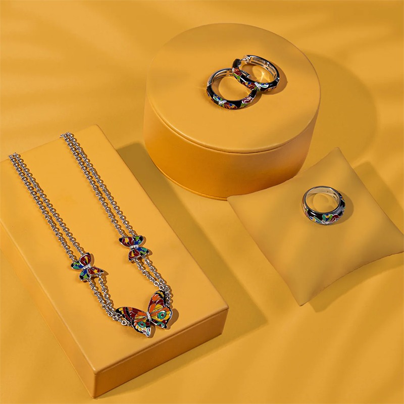 Boucles d’Oreilles Femme Créoles UNA STORIA PAPILLON Argent 925/1000 Rhodié CR121100, une célébration éclatante de la nature et de la féminité. Sculptées en argent massif rhodié, ces créoles élégantes présentent un décor laqué multicolore aux motifs de papillons stylisés, sublimés par des oxydes de zirconium scintillants. Chaque détail de ces bijoux révèle une maîtrise artisanale d’exception, pour un rendu à la fois audacieux, joyeux et sophistiqué.