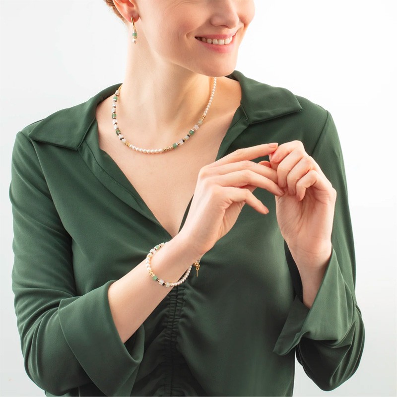 Apportez une touche de nature précieuse à votre style avec les boucles d’oreilles Precious Fusion Offset Or-Vert, référence 4354/21-0500, signées COEUR DE LION. Ces boucles délicates marient subtilement des Crystal Pearls by Swarovski® à de l’aventurine verte, rehaussées par des détails en hématite finition oxyde de titane, pour une élégance douce et contemporaine.