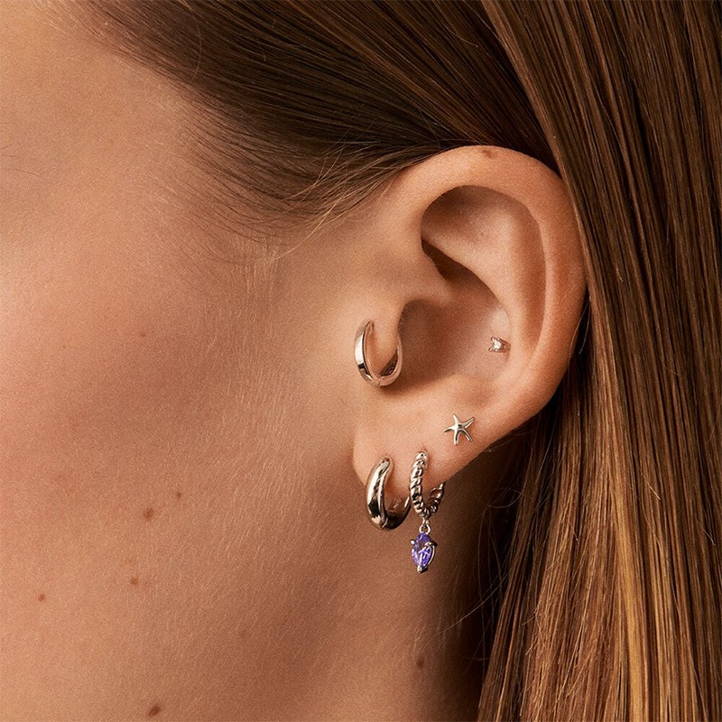 À la fois légère, intemporelle et versatile, elle est parfaite pour celles qui recherchent une touche précieuse à porter au quotidien. Seule, elle évoque la simplicité élégante. En accumulation, elle devient un point d’ancrage lumineux au cœur d’un jeu de piercings graphiques. Un bijou essentiel à collectionner pour exprimer sa personnalité avec finesse.