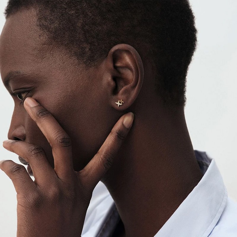 Pensé pour les adeptes de l’accumulation maîtrisée, ce piercing doré épouse parfaitement la courbe du lobe ou se porte sur le cartilage selon les envies. Sa petite taille (9 mm de hauteur) en fait une pièce idéale pour un mix and match sophistiqué, jouant sur les volumes et les reflets. Chaque détail a été soigneusement étudié pour offrir un bijou à la fois léger, confortable à porter au quotidien, et visuellement percutant. Une création qui révèle son intensité dans la discrétion.