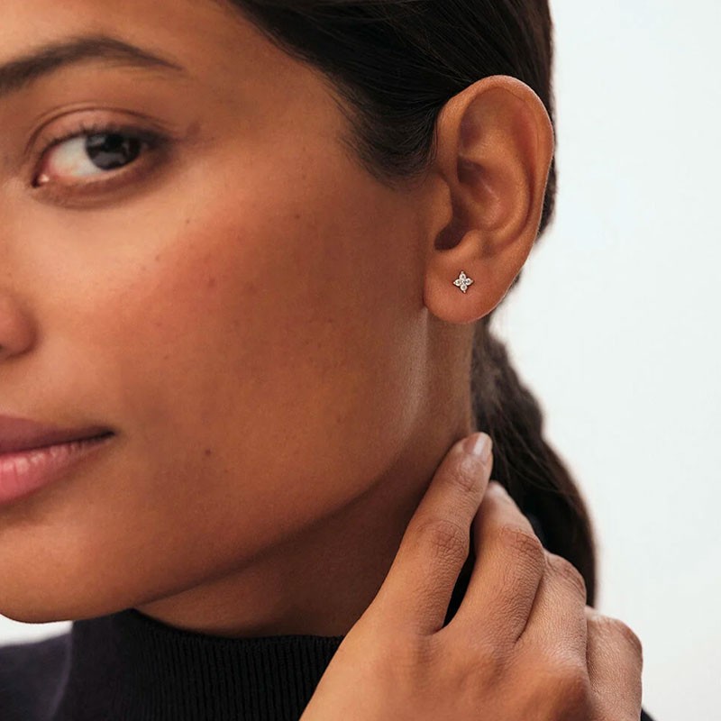 L'argent 925 dans sa pureté originelle offre cette brillance cool et contemporaine qui s'accorde à tous les teints et toutes les humeurs. Vendue à l'unité selon le concept Mix & Match, elle vous invite à composer votre propre jardin d'argent sur l'oreille, en l'associant à d'autres puces ou en la portant solo pour un effet fresh et délicat. Cette liberté de styling répond parfaitement aux envies changeantes des femmes qui jonglent entre réunions Zoom et brunchs dominicaux.