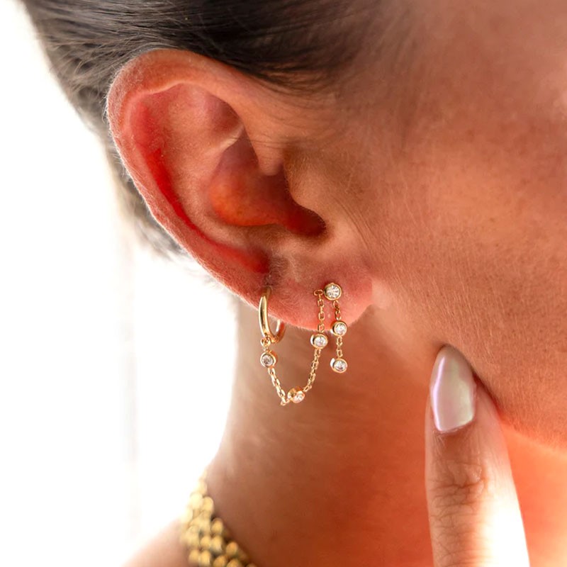 L'ensemble met en scène une accumulation tendance et lumineuse. Elles peuvent se porter pour toutes les occasions et se mélanger à d’autres boucles d’oreilles. Elles sont idéales pour une soirée glamour ou pour apporter une touche de sophistication audacieuse à un look de jour, offrant l'illusion d'un double piercing sans effort.