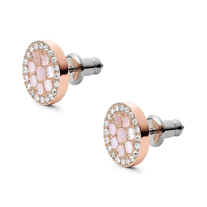 Boucles d'oreilles femme Puces FOSSIL Acier Doré Rose